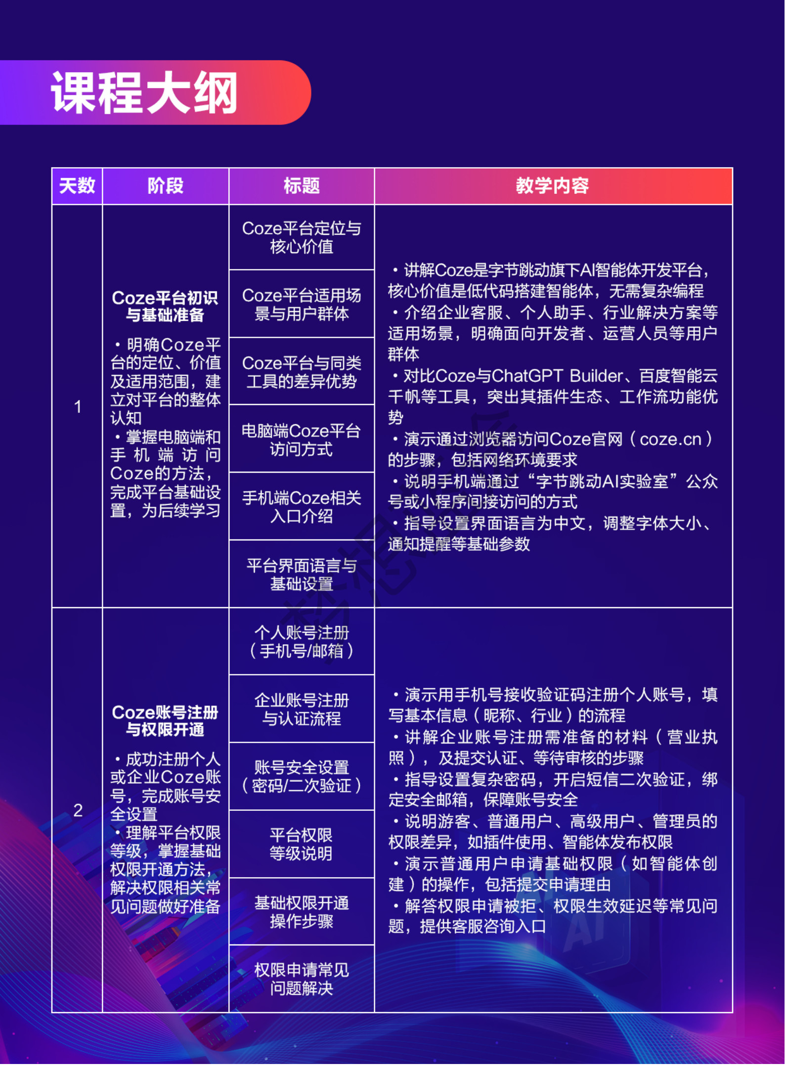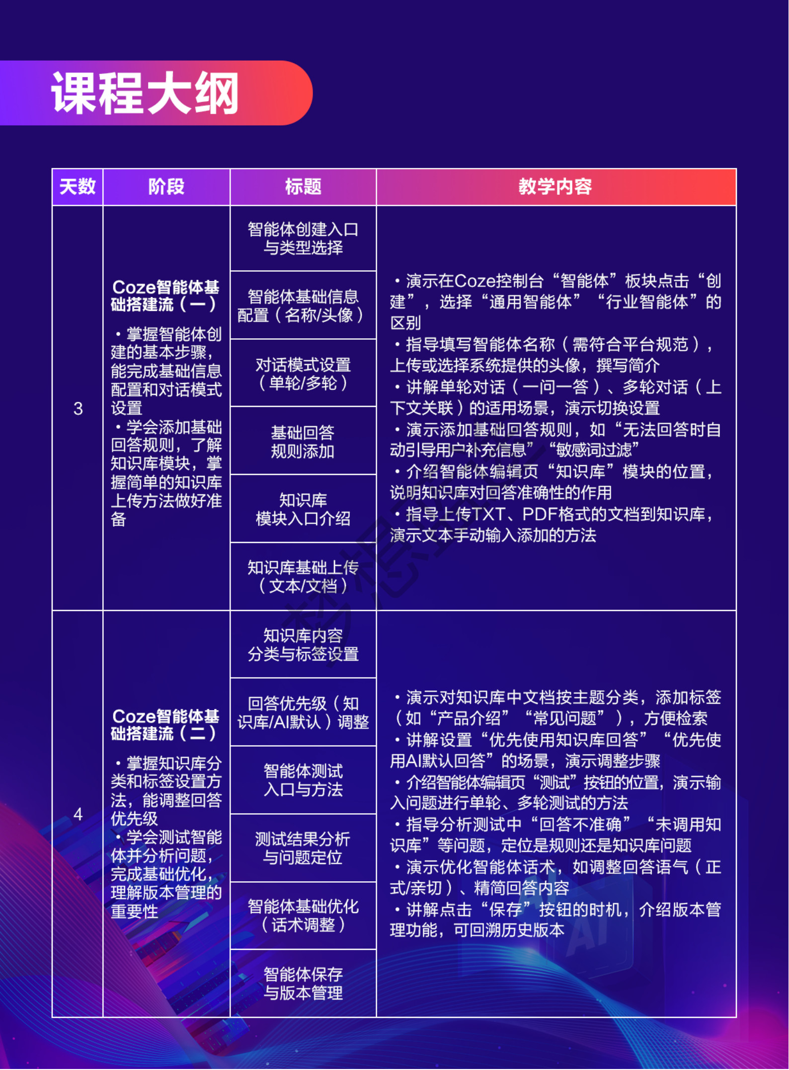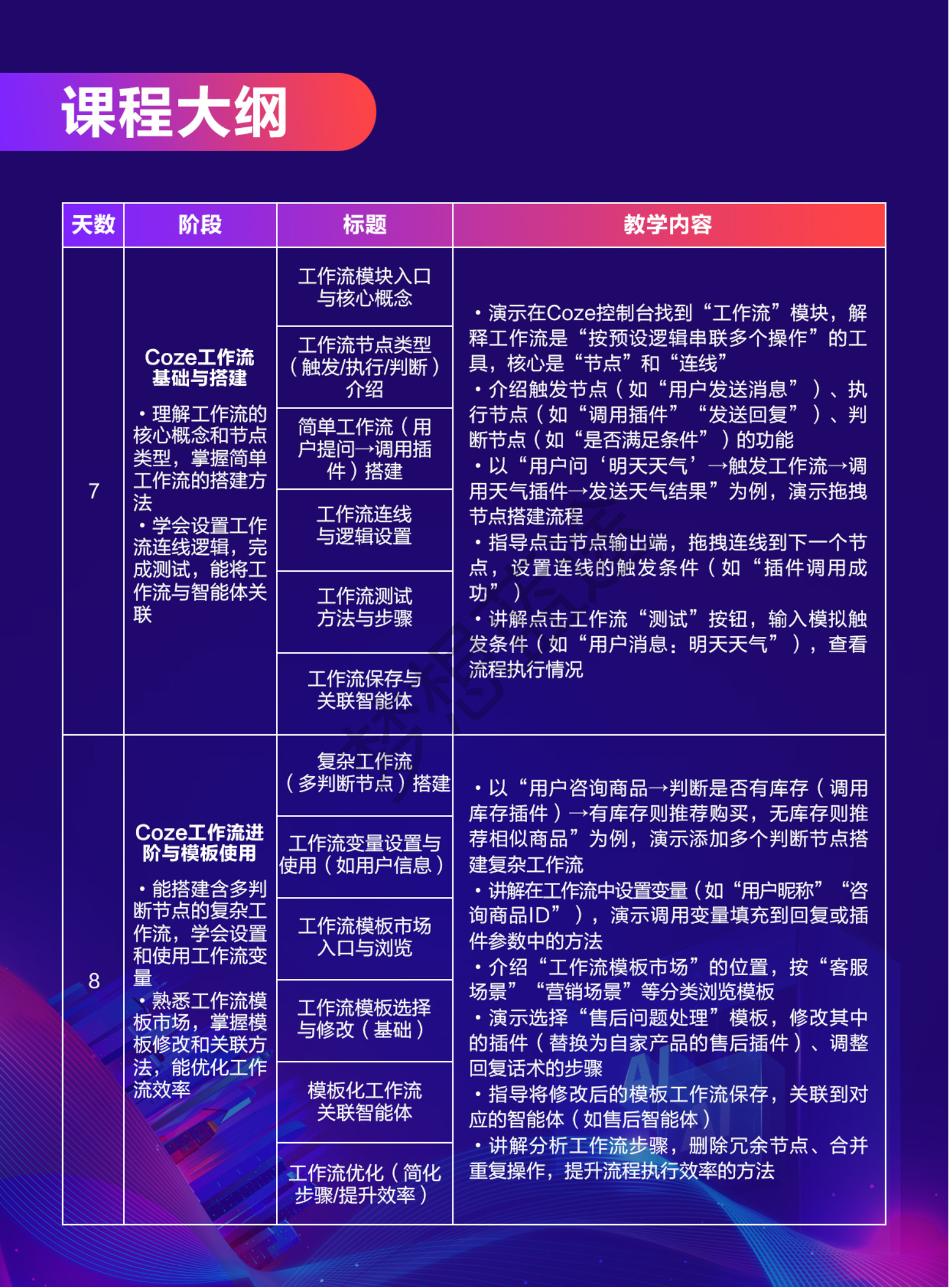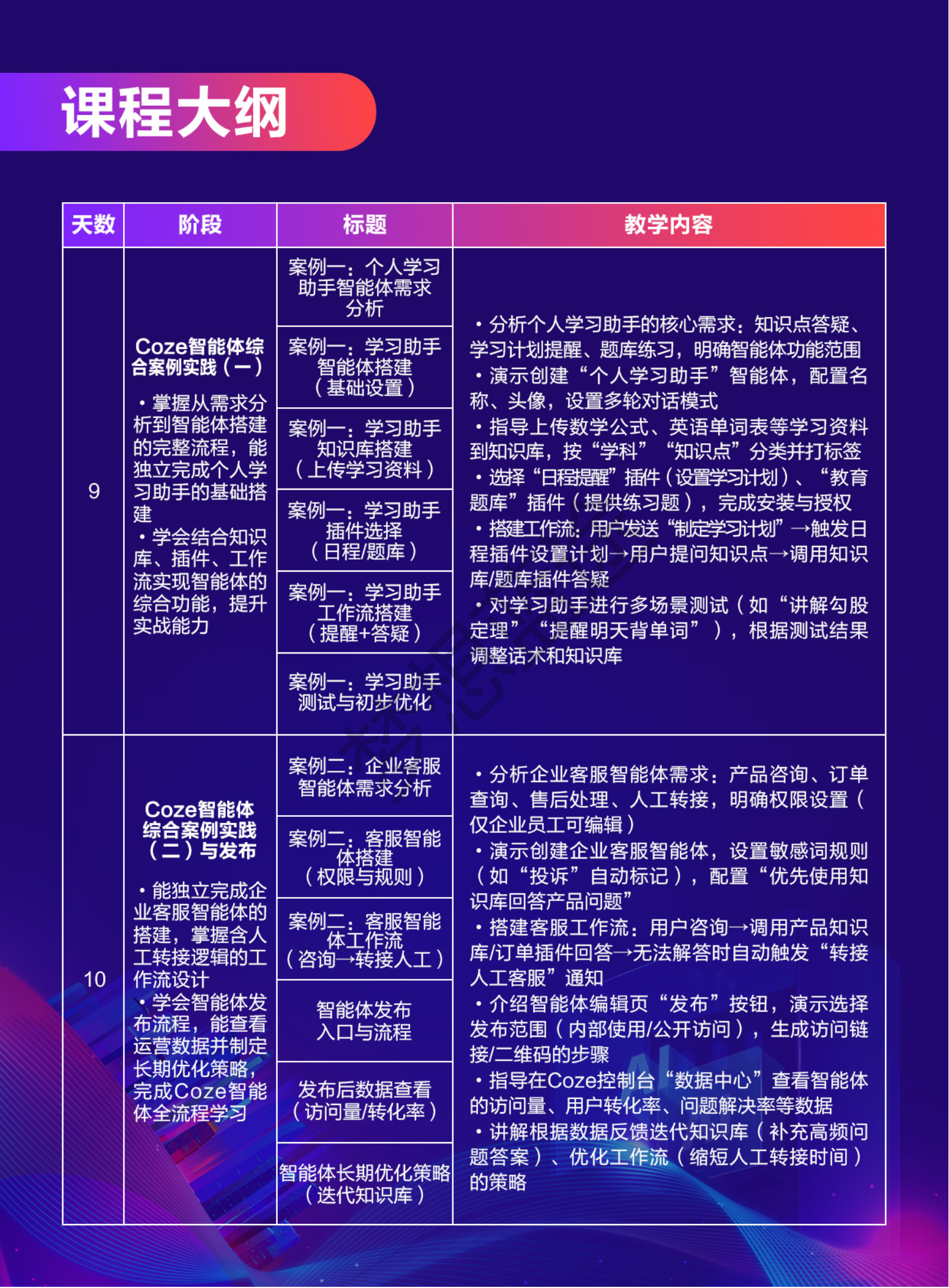 梦想蓝途—人工智能学院,为梦想蓝途旗下专注培养AI技术精英的子品牌,聚焦AIGC、AI大模型、机器学习、计算机视觉等前沿领域。联合湖南大学专家团队开发课程体系,学员可参与企业真实项目,培养智能系统开发人才。本课程:基于Coze平台的智能体开发课程体系10天。