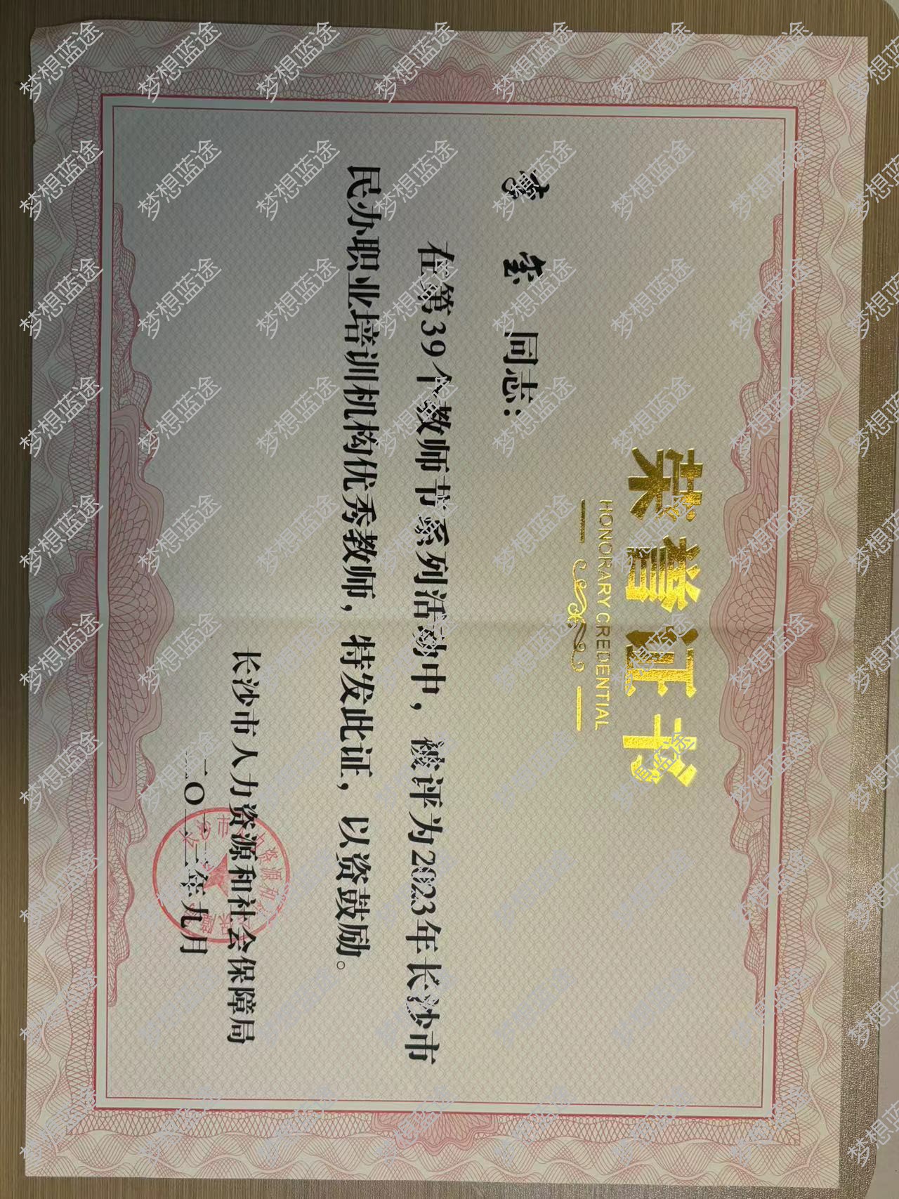 长沙市岳麓职业培训学校(梦想蓝途)李玺老师荣获2023长沙市民办职业技能培训机构优秀教师称号