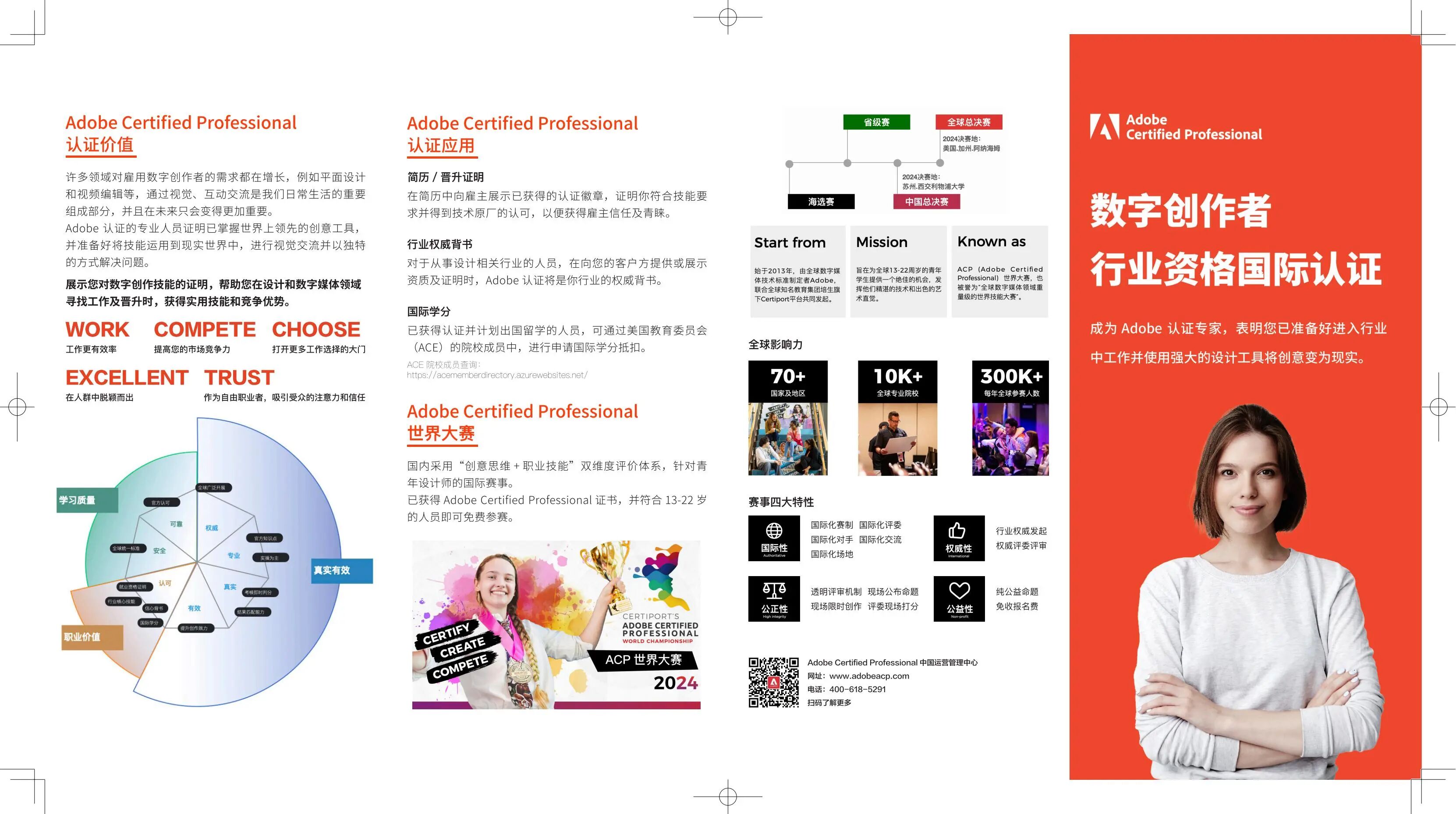 Adobe Systems Incorporated(以下简称Adobe)是全球最大、最多元化的软件公司之一,旗下拥有众多深受客户信赖的软件品牌,以其卓越的品质享誉世界。Adobe的客户包括世界各地的企业、科技工作者、创意人士和设计者。Adobe始终致力于通过数字体验改变世界。 Adobe国际认证(Adobe Certified Associate )是 Adobe公司推出的权威国际认证,主要面向全球 Adobe 软件的学习和使用者,由 Adobe 全球CEO签发,考核标准与考题设计经国际科技教育学会(ISTE)认证承认。Adobe国际认证全球发行19种语言版本,通行128个国家,获得国际社会广泛接纳和认可。