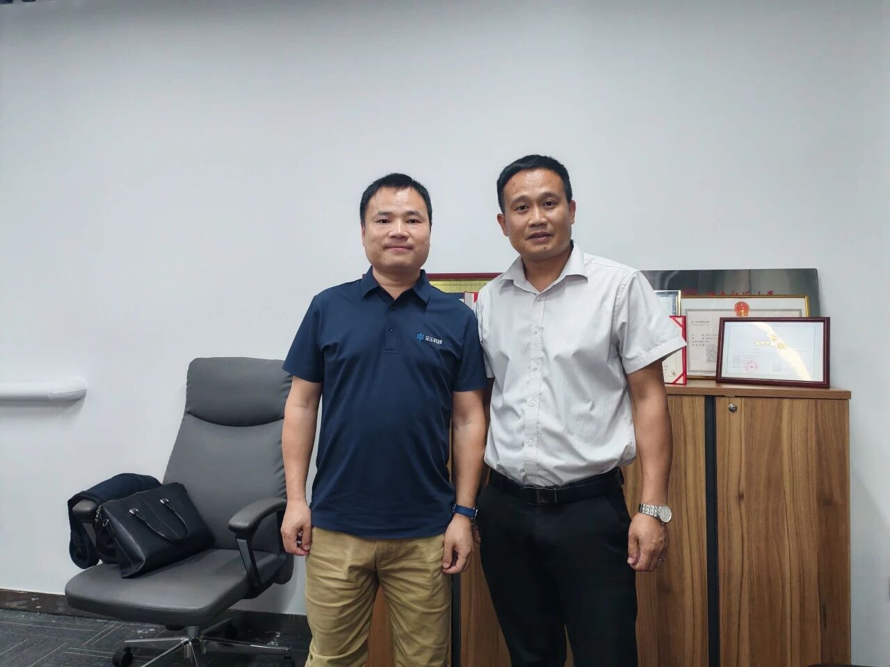 (我校就业部经理曾鹏老师与公司董事长蒋宇合影)